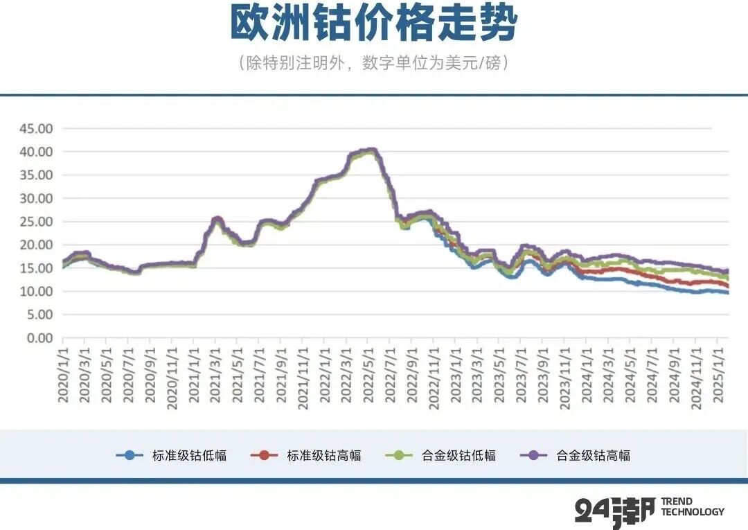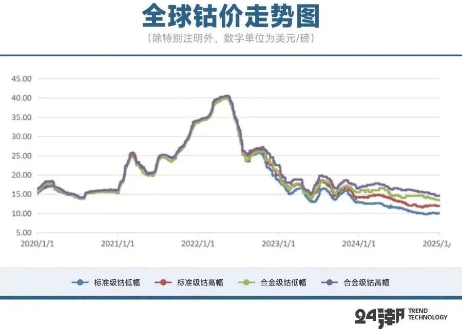 由于供应面的严重过剩以及需求的不景气带来了价格的暴跌,导致了钴金属的价格在2022年高点后一路走低。